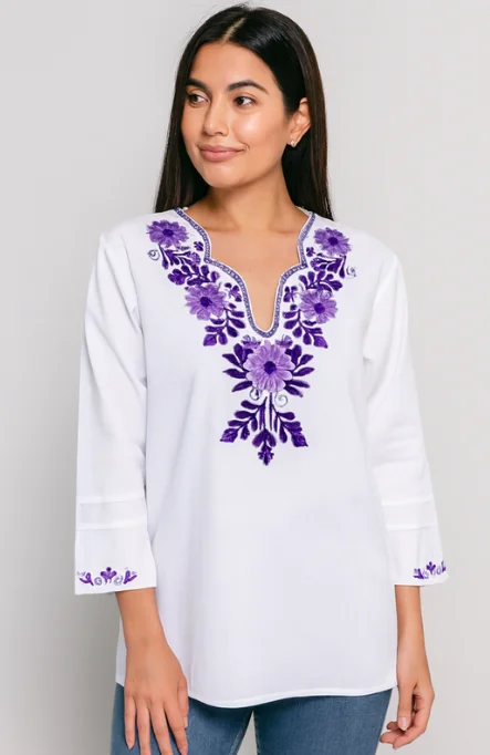 Blusas de silueta fluida diseñadas para ofrecer frescura y elegancia. Cada pieza destaca por su bordado artesanal de alta definición, combinando tradición y estilo contemporáneo.