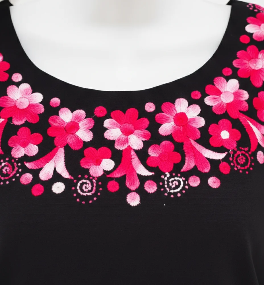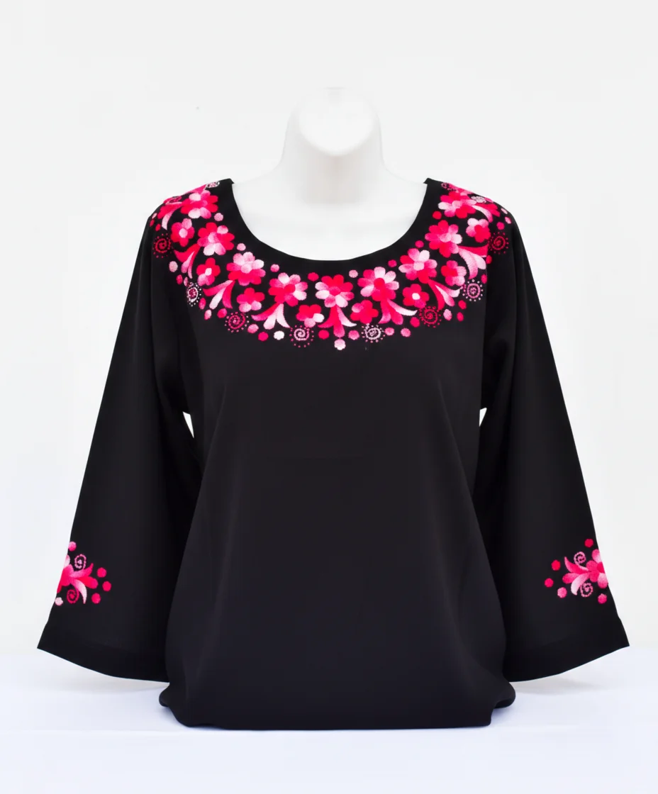 Blusas de silueta fluida diseñadas para ofrecer frescura y elegancia. Cada pieza destaca por su bordado artesanal de alta definición, combinando tradición y estilo contemporáneo.